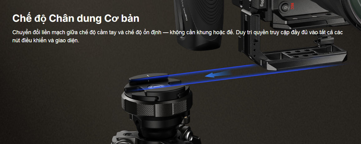Tấm đế tháo nhanh phía dưới, kết hợp với tấm gắn nhanh Arca-Swiss H38 “HawkLock” (ID 4486 ), cho phép gắn nhanh chóng bằng cơ chế tự khóa. Nó cũng cho phép chuyển đổi liền mạch giữa các thiết lập cầm tay, chân máy và gimbal (tương thích với bộ ổn định DJI RS 2 / RSC 2 / RS 3 / RS 3 Pro / RS 4 / RS 4 Pro). Ngoài ra, kẹp cáp HDMI đi kèm giúp cố định cáp để truyền dữ liệu ổn định.