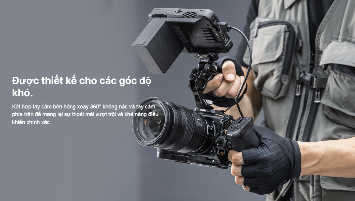 Bộ khung bảo vệ SmallRig dành cho Nikon ZR (Phiên bản nâng cao) 5468 mang đến khả năng vận hành cầm tay chuyên nghiệp, bảo vệ máy ảnh toàn diện và các tùy chọn mở rộng linh hoạt. Với tay cầm phía trên bằng silicon được thiết kế công thái học, nó cung cấp độ bám chống trơn trượt, chịu được lạnh để sử dụng cầm tay thoải mái và ổn định. Ngoài ra, tay cầm bên hông được thiết kế ôm sát cho phép điều chỉnh góc độ tối ưu chỉ bằng một chạm, giúp các phiên chụp ảnh diễn ra mượt mà đồng thời giảm mỏi tay khi sử dụng trong thời gian dài. Kẹp cáp HDMI và USB-C chuyên dụng đảm bảo kết nối an toàn cho việc truyền dữ liệu không bị gián đoạn.