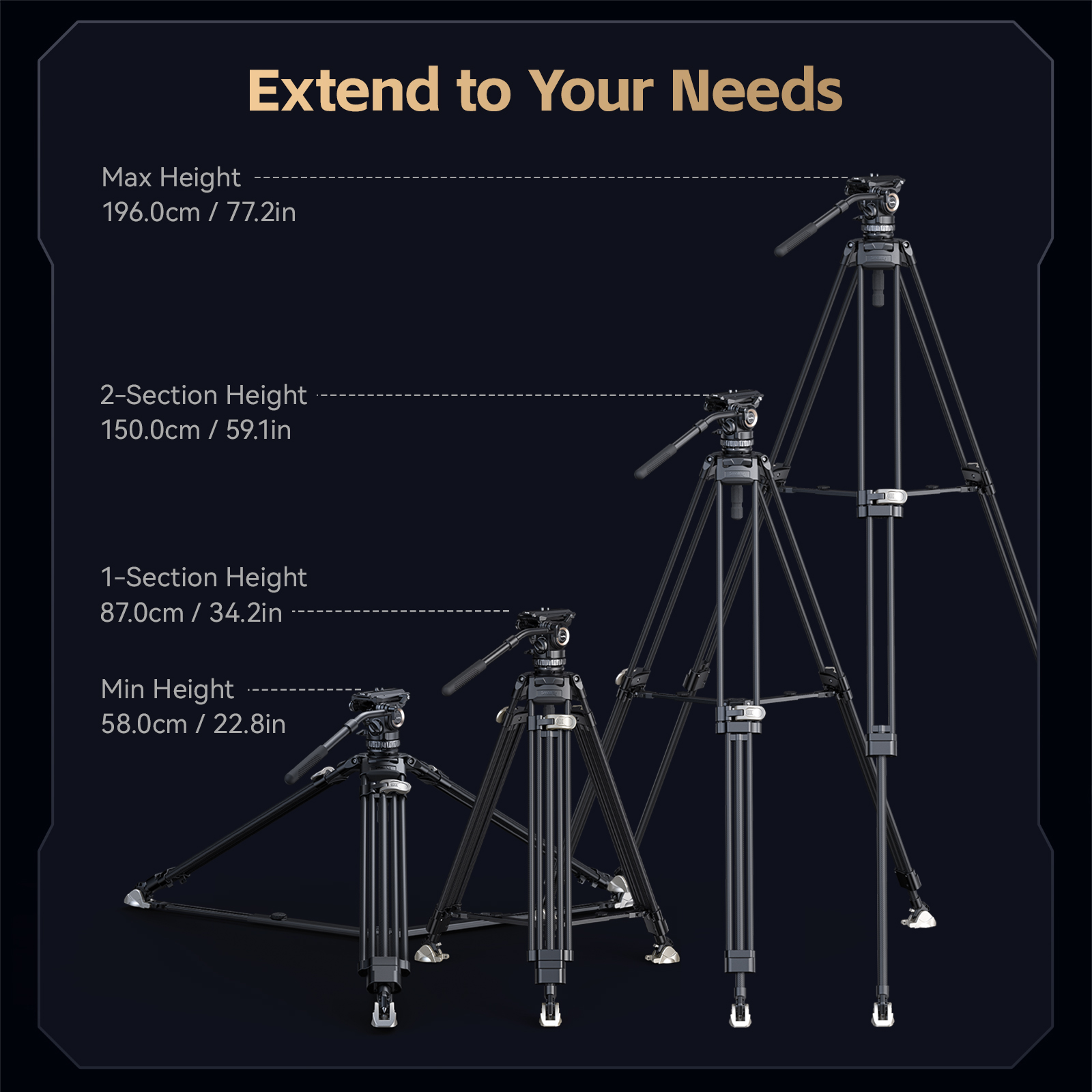 Bộ chân máy quay phim chuyên nghiệp SmallRig FreeBlazer Counterbalance Carbon Fiber AD-Pro8 4465 hỗ trợ quay phim. Chân máy có các chân điều chỉnh được, có thể thu gọn và kéo dài nhanh chóng bằng khóa gập. Chiều cao hoạt động từ 58cm (22.9in) đến 196cm (77.1in), và chiều dài khi gấp gọn là 97cm (38.2in) . Đầu tripod có hệ thống cân bằng 6 bước điều chỉnh. Khi chiều cao của trọng tâm là 55mm / 2.2", hệ thống cân bằng 6 bước sẽ cân bằng máy ảnh hoặc các thiết bị khác (lên đến 8kg / 17.6lb) và kiểm soát chính xác độ nghiêng của máy ảnh. Hệ thống giảm chấn thủy lực 4 bước có thể điều chỉnh cho phép xoay và nghiêng, mang lại chuyển động lia máy và nghiêng mượt mà. Đầu tripod PH8 sử dụng thiết kế tấm gắn nhanh Touch-and-Go mới, không cần căn chỉnh và hiệu quả hơn so với các tấm gắn trượt truyền thống. Tay cầm dạng ống lồng có thể tháo rời thân thiện với người dùng cho phép xoay và gắn vào cả hai bên trái và phải, phù hợp với mọi kiểu cầm nắm. Chân máy bằng sợi carbon nhẹ nhưng chắc chắn có các đế phẳng và gai có thể thay thế, các thanh giằng ở mặt đất và giữa, cùng với thước thủy. Gói sản phẩm cũng bao gồm một túi đựng chuyên dụng để bảo quản và bảo vệ sản phẩm.