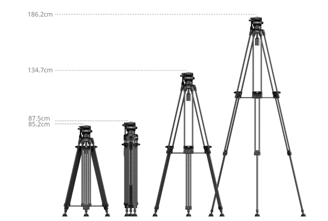 Chân máy được trang bị đầu tripod bằng hợp kim nhôm chế tạo chính xác, hỗ trợ tải trọng 10kg (22,05lb). Đầu tripod này có núm điều chỉnh giảm chấn nghiêng, cho phép kiểm soát chính xác các thiết bị có trọng lượng khác nhau, đảm bảo chuyển động máy ảnh mượt mà cho các cảnh quay chất lượng điện ảnh. Nó cũng tương thích với các tấm đế tháo nhanh tiêu chuẩn của Manfrotto hỗ trợ gắn ngang, cho phép gắn máy ảnh nhanh chóng và chắc chắn.