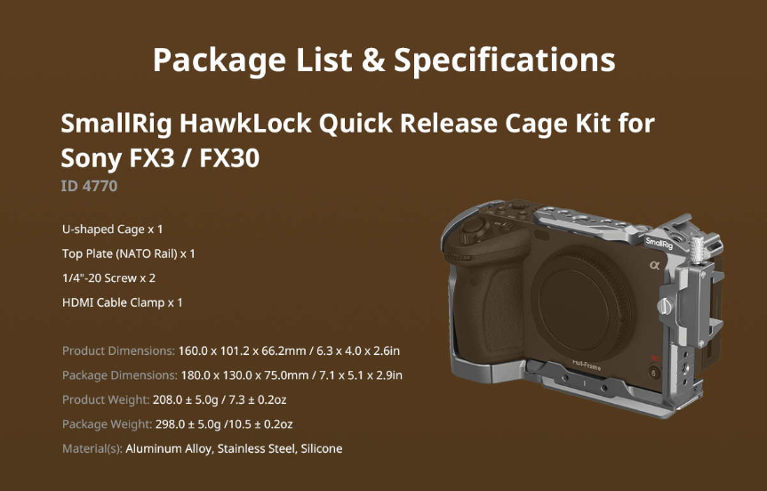 Bộ khung bảo vệ nhanh SmallRig "HawkLock" dành cho máy quay Sony FX3 / FX30 (Phiên bản nâng cao) 4771