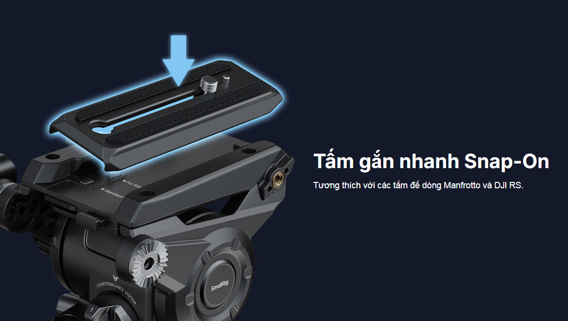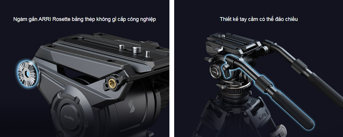 Bộ chân máy SmallRig Heavy-Duty Carbon Fiber Tripod Kit AD-120 4463 là bộ chân máy quay phim chuyên nghiệp hỗ trợ quay phim. Chân máy có các chân điều chỉnh được, có thể thu gọn và kéo dài nhanh chóng bằng khóa gập. Chiều cao hoạt động từ 58cm (22.9in) đến 197cm (77.6in), và chiều dài khi gấp gọn là 99cm (38.9in). Đầu chân máy có hệ thống cân bằng 6 bước điều chỉnh. Khi chiều cao của trọng tâm là 55mm / 2.2", hệ thống cân bằng 6 bước sẽ cân bằng máy ảnh hoặc các thiết bị khác (lên đến 8kg / 17.6lb) và kiểm soát chính xác độ nghiêng của máy ảnh. Hệ thống giảm chấn điều chỉnh vô cấp cho phép điều chỉnh xoay và nghiêng, mang lại chuyển động lia máy và nghiêng mượt mà. Đầu tripod 4464 sử dụng thiết kế tấm gắn nhanh Touch-and-Go mới, không cần căn chỉnh và hiệu quả hơn so với các tấm gắn trượt truyền thống. Nó tương thích với tấm gắn nhanh DJI RS Series và tấm gắn nhanh Manfrotto, cho phép chuyển đổi dễ dàng giữa chụp ảnh bằng bộ ổn định và chụp ảnh bằng chân máy. Tay cầm dạng ống lồng có thể tháo rời thân thiện với người dùng cho phép xoay và gắn vào cả hai bên trái và phải, phù hợp với mọi kiểu cầm nắm. Chân máy bằng sợi carbon nhẹ nhưng chắc chắn có các chân đế phẳng và gai có thể thay thế, các thanh giằng ở mặt đất và giữa, cùng với thước thủy. Gói sản phẩm cũng bao gồm một túi đựng chuyên dụng để bảo quản và bảo vệ sản phẩm.
