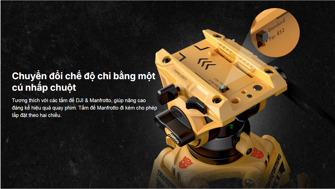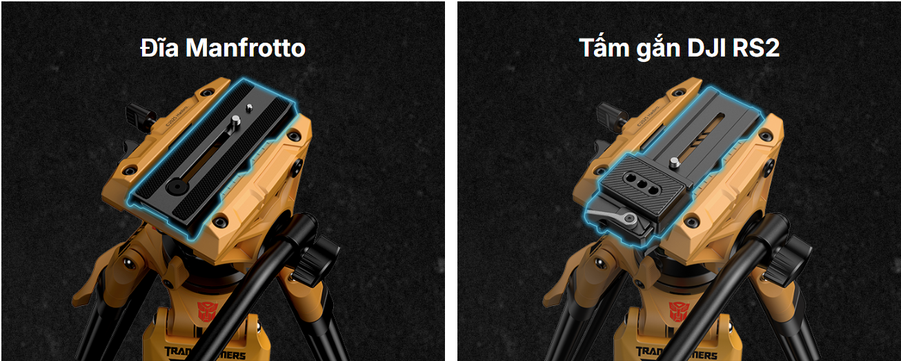 1. Tương thích với tấm đế tháo nhanh của bộ ổn định DJI RS 2 / RS 3 / RS 3 Pro; Cho phép bạn dễ dàng chuyển đổi giữa hai chế độ của DJI RS và Manfrotto .